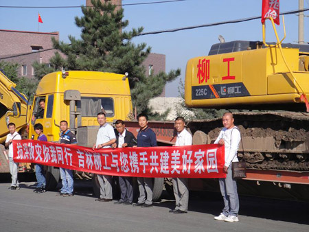 面对灾情,国内营销事业部领导在了解了解当地情况后,迅速指示当地办事处与北部抗洪救灾总指挥叶桦、陆庆途、韦成亮电话沟通并制定救援方案;8月9日,成立柳工救援队,同时办事处与吉林省柳工机械销售有限公司联系长春、吉林市附近柳工客户,就近租赁柳工挖掘机设备,并由经销商组织服务队伍跟随赶赴现场;同时抽调两台ZL50C装载机进行救援相关准备工作。8月11日凌晨5点,参加救援的机械及经销商操作手、服务队伍集结完毕从长春出发,并于9点30分左右设备到达吉林市旺起镇救灾现场。
