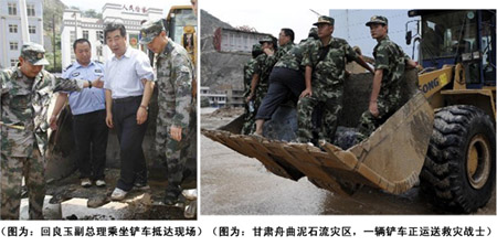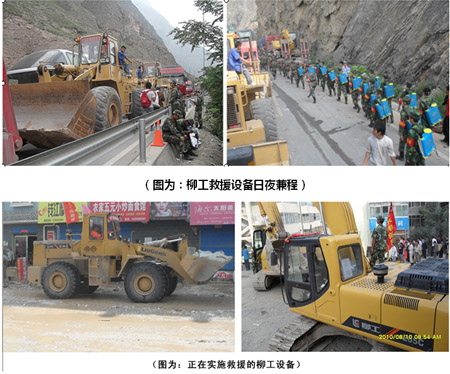 截止发稿时,柳工组织的设备已全部投入灾区的抢险救援工作中,但由于8月11日夜晚,舟曲境内普降大雨,再次引发山洪泥石流,45000余方泥石流致使舟曲灾区“生命线”——两河口至舟曲公路南峪大滑坡段交通完全中断。据天气预报称未来几日内舟曲还将有大暴雨,这将对救援工作的开展十分不利。
