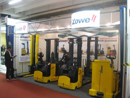 2011年8月2日,为期四天的第26届巴西物流仓储运输展览会(简称MOVIMAT)在巴西圣保罗盛大开幕。此次展会,吸引了包括丰田、小松、尼桑、现代、STILL等280余家国际知名叉车制造商的集体亮相。苏州先锋物流装备科技有限公司携XR电动前移式堆垛车、XP电动托盘搬运车、XE电动堆垛车、XT30电动牵引车等五款“Zowell卓一”经典车型,远渡重洋,盛装出席。