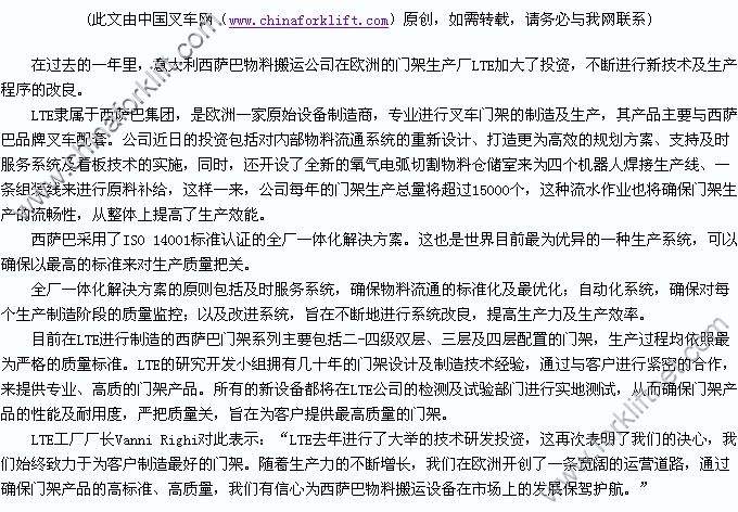意大利西萨巴:加大门架生产投资力度
