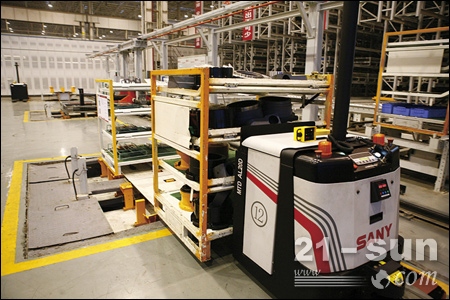 12月7日上午10:00,泵送系统部装班组需要两个水箱,物料员立刻打电话给立体仓库,不到15分钟,自动配送物料的AGV小车即带着两个水箱,停在指定工位。