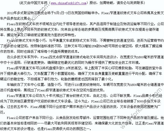 Flexi铰接式叉车亮相2012年多式联运物流展览会