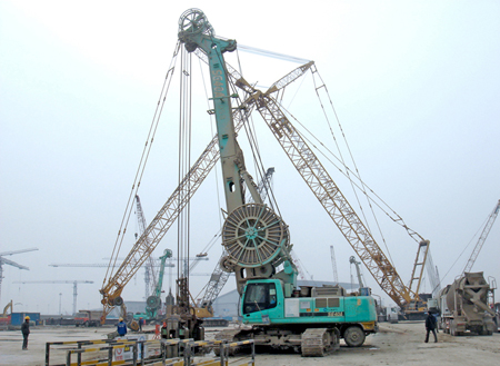 滨海国际机场交通枢纽工程是天津市“十二五”期间重点建设项目。由于项目工程量大、工期紧、工程质量要求高,所以年初开工时,施工单位就调用了国内外多个厂家的基础施工设备,柳工上海金泰公司SG系列抓斗凭借技术领先、性能卓越、品牌口碑俱佳等优势,以进场数量和型号最多、施工综合效率最高的评价结果令竞争对手黯然失色,成为这场“竞赛”的大赢家。据统计,目前该公司已有8台SG抓斗在现场施工,产品涵盖大功率抓斗的全部主流产品,随着工程进度的加快,后续还将有设备陆续进场。