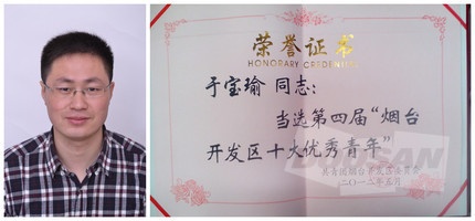 由共青团烟台开发区委员会主办、烟台开发时报和烟台开发区电视台协办的第四届“烟台开发区十大杰出青年”和“烟台开发区十大优秀青年”评选日前揭晓,斗山工程机械(中国)有限公司生产部组装线于宝瑜组长喜获“十大优秀青年”荣誉证书。