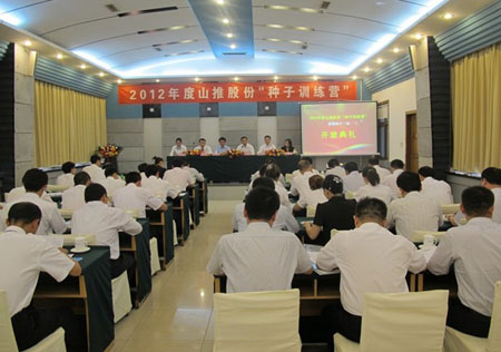 5月16日,山推在泗水圣源度假村隆重举行了2012年度山推“种子训练营”第一期管理种子班开班仪式,39位科级、主管层次管理人员作为第一期学员参加了开班仪式。