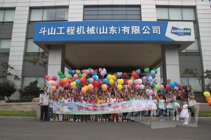 每年的6月1日是孩子们一年中最开心的一天,因为这天要么学校安排很多文艺节目一同庆祝,要么学校放假回家跟爸爸妈妈一起欢乐。对于位于斗山工程机械(山东)有限公司(简称DISD)邻村的北官庄小学的孩子们来说,今年的六一儿童节是特别的、激动人心的,因为他们接到了DISD发出的特别邀请。原来为了拉近企业与当地居民的关系,提高公司美誉度,DISD策划了主题为“阳光童年,快乐斗山”的一系列活动。