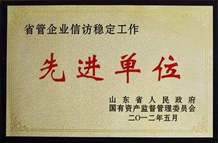 近日,在山东省国资委系统信访稳定工作会上,公司被省政府、省国资委评为“2011年度省国资委信访稳定工作先进单位”。