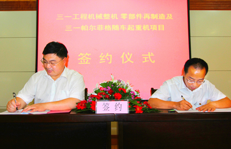 转载 2012-07-27 08:37 中方机械 来源:中方机械7月5日上午,马鞍山经济技术开发区管委会主任马少华与中方工程机械有限责任公司董事长施宏全在开发区一楼会议室签订了《三一工程机械总机、零部件再制造及三一帕尔菲格随车起重机项目》和《年产6000台电动叉车项目》两份重量级投资合同,标志着中方机械迈向了跨越式大发展的新台阶。