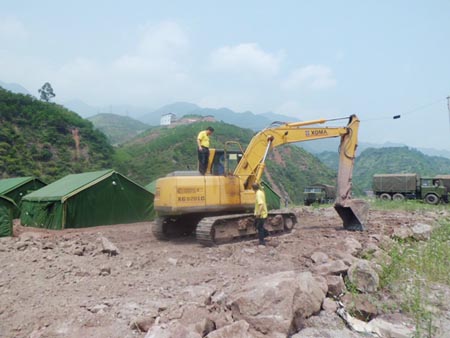 在灾区,小分队还遇到了在一台正在部队营区待命的厦工XG820LC挖掘机。它是当地个体户去年购买的机器。得知灾情发生后,这名客户主动找到部队要求参加抢险救灾。小分队立即上前,对这台机器进行了应急检查,对各部位重要管路螺栓进行加固锁紧,调整油门压力等等,确保以最佳的状态参加抢险救灾。