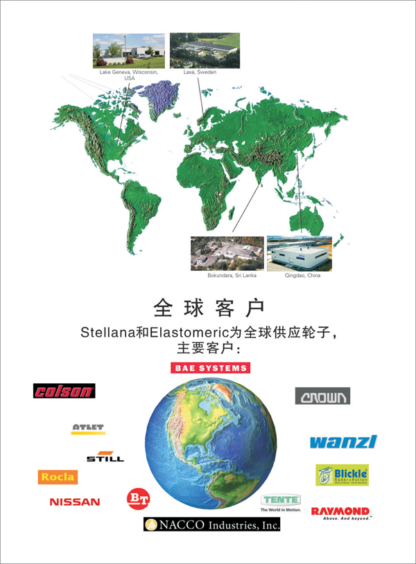 Stellana(四达轮业)是全球领先的运输及物流行业用轮子制造商, 隶属于瑞典上市集团HEXPOL AB的工程产品部门。 Stellana的发展历程可以追溯到1946年,经过长期持续稳定的成长和一系列的收购,我们已经发展成为一个国际化的集团公司,并在全球拥有四个现代化生产基地(中国,瑞典,美国,斯里兰卡),生产提供包括Vulkollan®, 聚氨酯轮,注塑轮及橡胶轮等在内的全系列高品质叉车用轮,并成为众多行业领先的电动叉车,手动叉车及其他高品质物流设备生产商的全球战略合作伙伴。