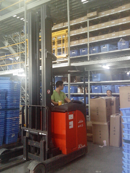 设备上,唯品会的仓库虽算不上豪华,但也绝不含糊。仓库内有大面积的阁楼区域及高位货架,叉车可谓第一工具,这里使用的是有名的林德叉车。据唯品会仓库主管张剑介绍,唯品会对叉车设备的选择着重考虑性能和耐用度,从长远的角度优化设备利用,林德叉车价钱虽高,但员工使用方便舒适,长期维护成本也较低。另外,仓库每个区域都安装了巨型的风扇,功率极高,即使炎炎夏日,也不觉得仓库内闷热难耐。