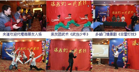 同去年一样,今年的迎新晚会由技术中心承办,在技术中心的统筹策划下,有了全公司各部门的积极参与,使得本次年会热闹非凡,异彩纷呈,高潮不断。歌曲、舞蹈、小品等共十余个节目轮番上演,台上的人绝对是非专业演职人员中最专业的,台下的人看得也忘记了桌上的美味佳肴,笑声、掌声、安可声连绵不断。而来自全国各地的经销商朋友也被我们的这种热情感染,早已不安分于观众的角色,争相上台高歌助兴,得到了阵阵掌声。晚会现场早没了宾主之仪,大家玩成一团,一时间,会场成了欢乐的海洋。