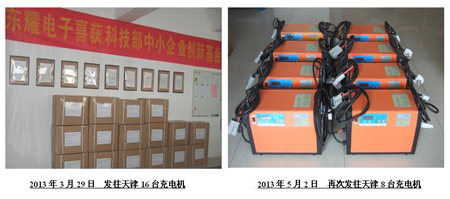 日前东耀携手国内一知名叉车租赁公司,继2013年3月29日发往天津16台充电机,5月2日再次发往天津8台充电机,这两批充电机均配套无锡开普1.5-2.5吨电动叉车,用于知名食品企业——康师傅集团下属工厂。该款充电机除具有常规充电功能外,还特别设计有“脱硫充电”功能,满足老化硫化电池组的修复维护需要。