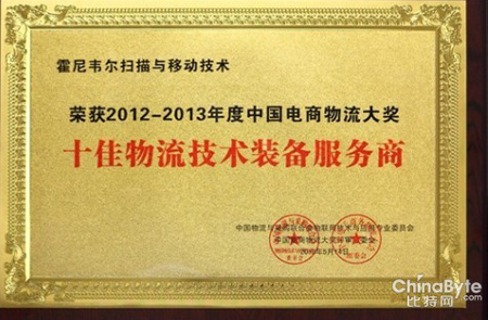2013年5月14日,在昆山举行的第四届中国电子商务物流大会上,霍尼韦尔扫描与移动技术部喜获2012-2013年度中国电商物流“十佳装备服务商奖”。本次评选活动是由中国电商物流大会组委会主办,旨在表彰为中国电商物流行业做出贡献的领军企业,共同促进电商行业的有序竞争和共同发展。