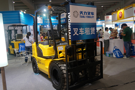 天力叉车集团是国内规模最大的叉车整机代理、销售商,此次广州国际叉车及配件展览会,天力集团所展示的是其代理的主要品牌之一--现代叉车,以叉车租赁为主题参展。近年来叉车后市场逐渐成为整个叉车行业的重要发展方向,为适应市场的需求,叉车租赁业务也是天力叉车的重要开拓目标。截至目前,天力的叉车租赁业务成果丰硕,已获得多个租赁大单。