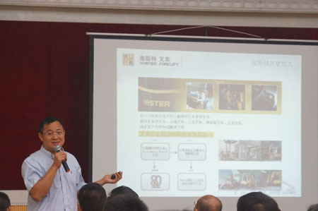 海斯特广州分公司南中区高级区域经理刘国胜先生致辞表示,作为享誉全球80多年的国际品牌,海斯特始终坚持为客户提供最兼顾耐用的叉车产品。海斯特叉车能得到众多客户的长期支持与关注,表示由衷感谢。随后介绍了海斯特公司的历史、产品系列、遍布全国的销售服务网络以及海斯特产品在各个行业中的应用情况。