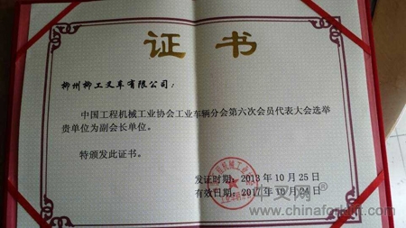 柳州柳工叉车有限公司被推选为CITA副会长单位