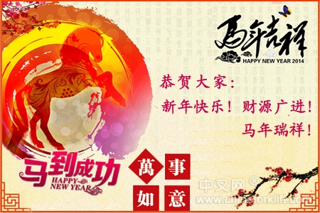 原创 2014-02-07 14:13 中叉网(www.chinaforklift.com) 来源:中叉网(www.chinaforklift.com) 律回春晖渐,万象始更新,我们告别成绩斐然的2013,迎来了充满希望的2014,中国叉车网(www.chinaforklift.com)祝大家新春愉快、万马奔腾、快马加鞭、马年顺顺利利、生意红红火火,在礼炮声声中开门大吉!