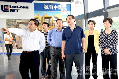 郭军等一行参观了公司文化产品展厅,听取了集团公司党委书记、董事长王晓华就柳工历史、文化,以及系列工程机械产品介绍;听取了公司党委副书记、纪委书记、工会主席王相民所作的《工会法律援助及维权方式创新》工作汇报。