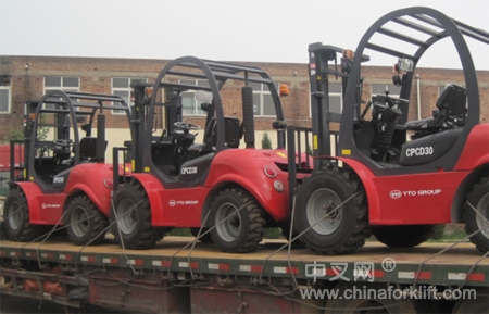 图为发往巴布新几内亚的东方红越野叉车