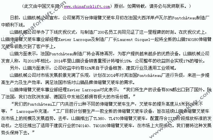 在过去五十多年中,山猫公司及其产品一直在改进,以满足全球客户的要求。现在,山猫产品家族包括滑动转向装载机、伸缩臂叉装车、小型挖机和多种属具。现代制造技术如计算机数字控制和机器人的使用,严格的质量和成本的控制,有助于山猫在全球市场上保持竞争力。我们一直在改变,但是,自1947年来,山猫始终坚持对卓越品质和工艺的承诺。