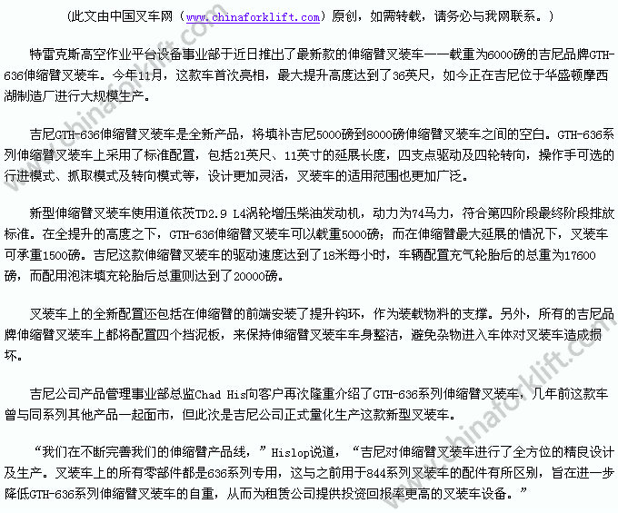 吉尼展出全新GTH-636系列伸缩臂叉装车