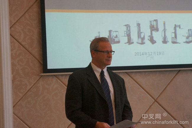 Crown-科朗设备中国区总经理Jon Martin先生代表科朗叉车致辞,感谢与会代表的到来,感谢对Crown-科朗叉车设备的支持。