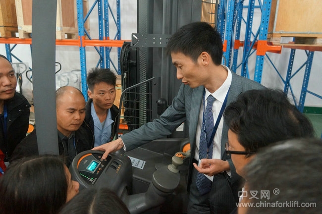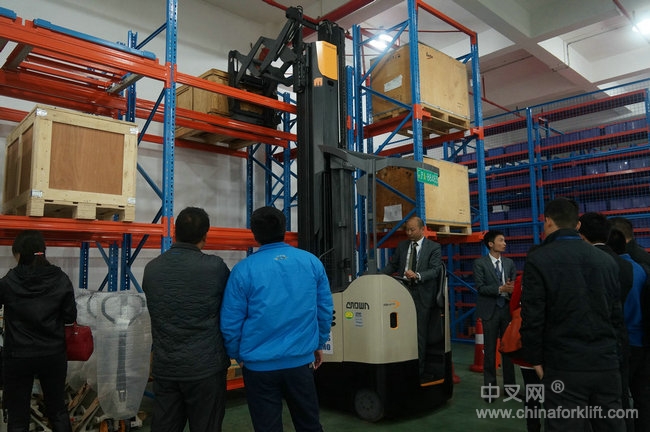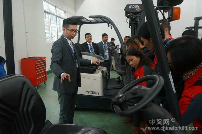 15:30全体人员来到Crown-科朗广州分公司,公司工作人员为大家介绍了Crown-科朗双深度前移式叉车RMD6000和三轮平衡重式叉车SC5200。通过现场产品展示和对比的形式,更加体现了Crown-科朗产品无与伦比的设计、卓越的制造技术。客户代表透过产品现场展示更加深切的了解Crown-科朗叉车产品的优越性能,在认真聆听工作人员的详细讲解,并切身感受各款产品。