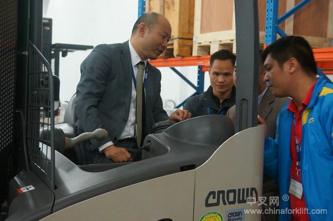 在谈到产品应用时,邓总讲到,Crown-科朗叉车均满足北美、欧洲和亚洲等不同地区的产品标准,并应用与客户需要所匹配的技术;为客户提供更加齐备的维保政策和售后支持团队;完善的安全操作培训支持,包括课堂理论知识和现场操作培训。依靠科朗一流的团队,努力为客户提供一流的服务。