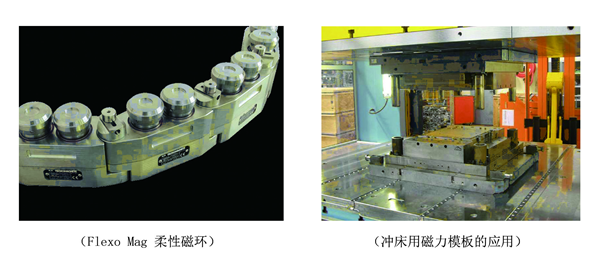 2014年,宁波海天驱动有限公司凭借其良好的平台优势和技术实力,开始与泰磁公司就“开拓新型注塑机磁力模板”展开合作。其合作成果----PressTec Grip(PTG覆盖式磁力模板)产品具备37mm超薄厚度,背面吸附于注塑机模板,可使磁板受力均匀以及增强磁板刚性,现已成功推向市场。该产品在一台注塑机上可对各种不同模具进行快速换模,特别适用于多品种、小批量、准时制混流生产。另外,该产品的夹紧力均匀分布于模具与磁板的全部接触表面,使模具背面无受力“空腔”,更好地保证了合模精度,大大减少了模具损耗,从而提高模具使用寿命。根据产品特性,该合作将为客户带来巨大的经济效益。