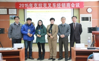 大会进行了2014年度优秀代理商颁奖仪式,由克拉克叉车亚洲区销售总监朴天一常务,克拉克青岛工厂CEO慎虎范代表以及克拉克中国销售总监韩相万理事为 2014 年度优秀经销商颁发奖杯。