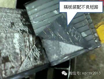 (1)隔板质量不好或缺损,使极板活性物质穿过,致使正、负极板虚接触或直接接触。