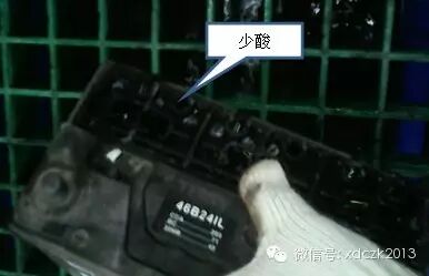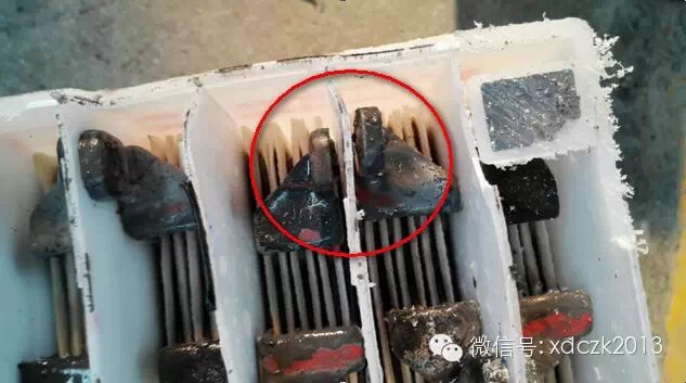 (2)正极板活性物质,由于板栅受到腐蚀而失去了应有的强度和凝固性,造成脱落,这种脱落往往是呈块粒状。