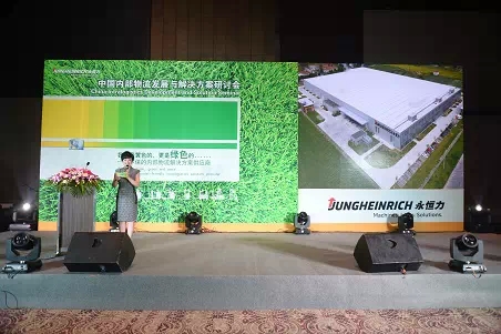 首先举行的是中国内部物流发展及解决方案研讨会,永恒力叉车中国区CEO欧亚雷先生用标准流利的中文向与会嘉宾致辞:“我们不断地为构筑绿色的内部物流体系而努力,而今天我们也想借此机会和全行业的朋友们一起探讨中国内部物流的发展。”