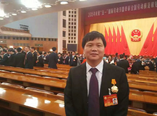 4月28日,2015年庆祝“五一”国际劳动节暨表彰全国劳动模范和先进工作者大会在北京人民大会堂隆重举行。我公司技能大师廖国锋作为全国劳动模范,光荣出席本次大会并接受表彰。