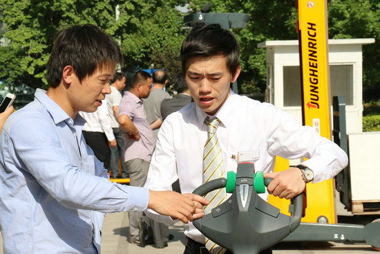 对于永恒力全系列产品在陕西西安的第一次大规模集中展示,当天的与会来宾也展示出了极大的热情,虽然初夏的烈日当空,但大家还是纷纷围在自己感兴趣的永恒力产品周围,看工作人员的操作演示,耐心地倾听产品讲解,也积极地与工作人员进行产品技术及应用方面的交流。除此以外,许多来宾也亲自体验试驾了永恒力的各款明星产品,从大家脸上洋溢的笑容不难看出,永恒力叉车完美的工艺、领先的技术和舒适的操控已经俘获了他们的心。