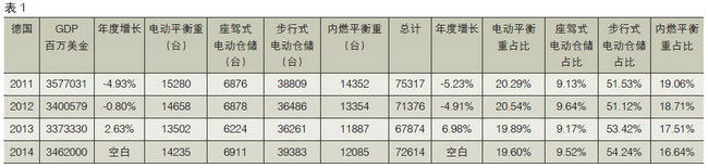 举例说明,2014年德国的GDP是中国的34.8%,叉车的发货量是中国的27.0%,电动仓储叉车的发货量是中国的120.8%。(见附表1-1、附表1-2)但是,德国VNA的销售量却是中国的4倍左右,而全自动堆垛机的销售台数(AS/RS)却是和中国保持相近的数量,约为1500台-2000台/年。由此可见,大多数的德国制造企业仍然采用传统的窄巷道方案,而不是盲目地实施全自动的堆垛机方案。市场的需求推动了技术的发展,在德国以永恒力公司为代表的叉车企业推出了VNA叉车的导航技术,使得传统的VNA叉车可以在WMS的直接管理下实现自动存取货物的功能。而中国虽然出现了众多的堆垛机制造企业,但是受技术积累不足的局限,大家仍然处在降价竞争的状态,市场还没有做大,利润空间已经被压缩了。