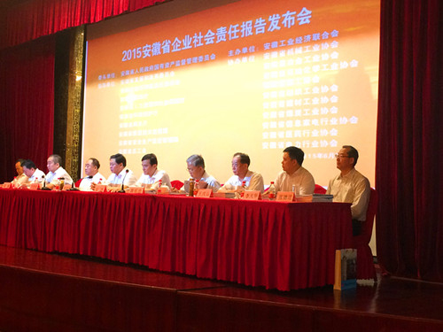 6月29日上午,由安徽省国资委牵头、省工业经济联合会主办的“2015年安徽省工业经济行业企业社会责任报告发布会”在合肥举行。安徽合力张德进董事长、张孟青总经济师等领导应邀出席会议。