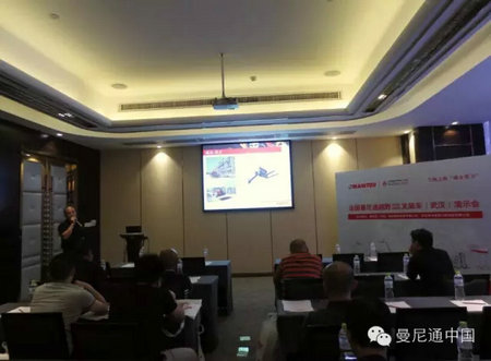 武汉双龙源泉工程机械有限公司总经理徐建林先生首先致辞欢迎各位嘉宾并介绍双龙源泉公司基本情况,随后曼尼通中国华东区销售经理罗征向嘉宾介绍曼尼通集团和曼尼通产品在建筑领域的应用和成功案例。
