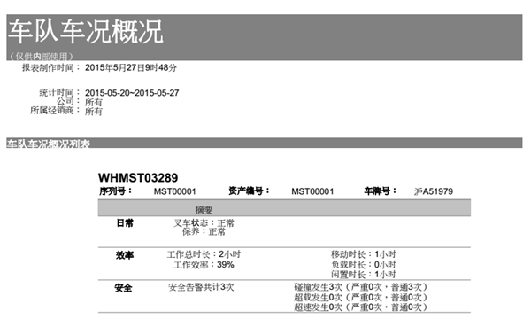 Foms在线系统可为客户提供三大类报表:日常报表、效率报表和安全报表,客户可根据这三大类报表详细的了解叉车及操作员在日常工作中的信息。