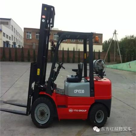 "东方红"YTO-CPYD30双燃料叉车是一拖(洛阳)搬运机械有限公司追踪国际叉车市场主流趋势,自主研发的具有独立自主知识产权的搬运与装卸机械产品之一,它选用日本NISSAN 汽油机,同时配备LPG液化石油气罐,并通过转换装置,实现LPG与汽油两种燃料的相互转换,操作起来十分便捷。该款车型是专门按照欧盟最新的CE标准设计生产,完全可满足欧盟国家对安全和排放的要求。而且能够做到连续7 天24小时不间断工作,大大提高了作业效率。