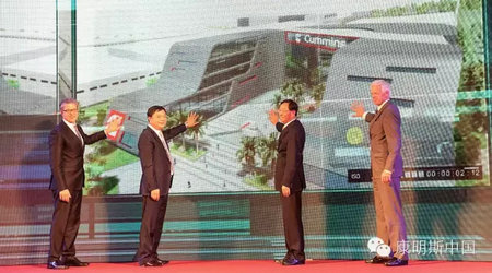 为了更好地支撑业务发展,重庆康明斯将在重庆市北部新区建立世界一流的大马力发动机技术研发中心和新的生产基地。重庆康明斯新工厂将着眼于先进大马力平台的升级和开发,为中国市场量身打造适合客户需求的优质动力。在庆典现场,重庆机电股份有限公司执行董事兼总经理余刚,曹思德,王洪杰和原康明斯副总裁Mark Levett共同按下启动按钮,把重庆康明斯新基地的蓝图展示在现场嘉宾面前。