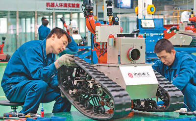 转载 2016-04-13 08:33 人民日报 来源:人民日报4月12日,中信重工开诚智能装备有限公司的员工正在加紧生产国内首家具备认证资质的防爆消防机器人。这类特种机器人主要用于石油、化工等高危领域,能够代替相关人员对事故现场进行探测、搜救、灭火,并将探测到的数据实时回传到控制指挥中心。该产品投放市场之后,订单不断,迅速成为中信重工新的业务增长点。