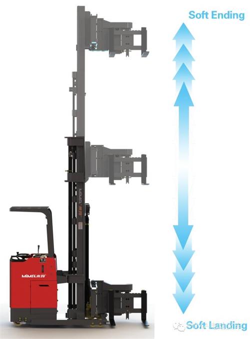 人性化设计:货叉软着陆,当货叉接近地面时,其下降速度会自动降低;优化后的门架减少了上升和下降时的震动,操作更加舒适;标配的轮显和摄像头(4.5m以上),让操作一目了然,便捷高效。