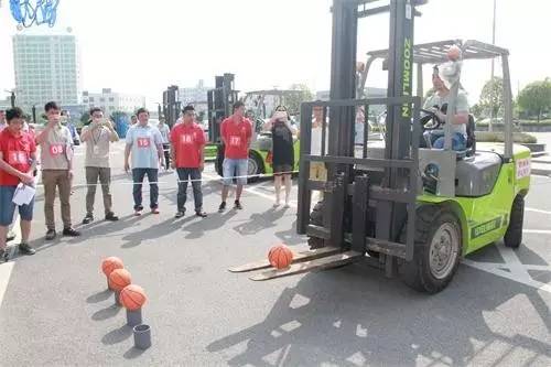 (参赛选手驾驶中联重科叉车进行“投篮”项目)