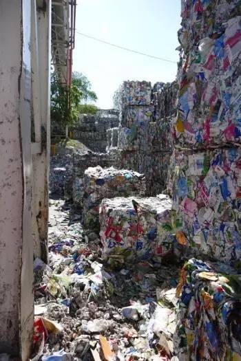 下午三点的巴塞罗那,荫凉处的气温就已高达35度,马蜂围绕着压缩好的纸箱团,这样的场景看起来更像一个艺术场所混杂着波普艺术的气息,其实这里就是巴塞罗那纸板公司,公司始建于1967年,巴塞罗那纸板公司在该地区收集170000吨的纸板包装,之后把它们转化成为外包装盒的原材料。