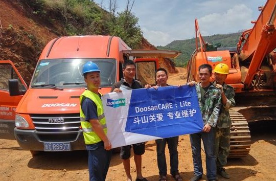 自“DoosanCARE斗山关爱”2013年建立以来,本着“以客户为中心”的宗旨,斗山工程机械在全国范围内连续开展了“斗山关爱·专家随行”的客户巡检活动。各领域的技术专家、售后精英不远万里来到客户身边,检查设备、维修保养、检验零部品配件、培训客户管理保养设备,通过全流程售后服务方案解决客户的后顾之忧。