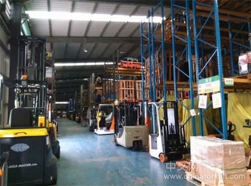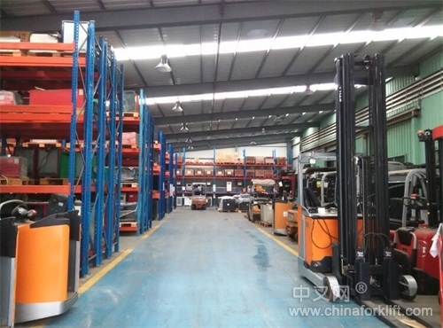 伟轮叉车(东莞)有限公司的仓库一角,货架上各种型号的叉车产品琳琅满目,应有尽有,而且伟轮叉车公司从来就没有任何贷款,这也是伟轮叉车公司实力的真正体现。