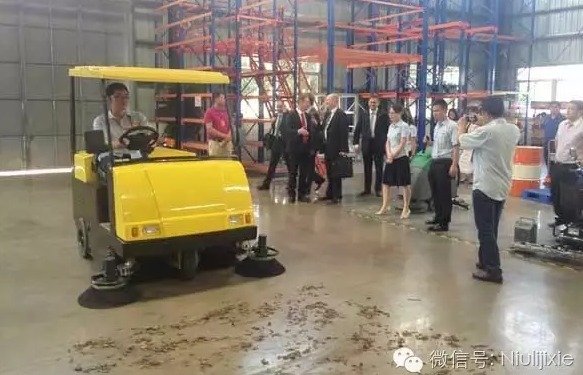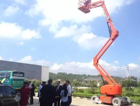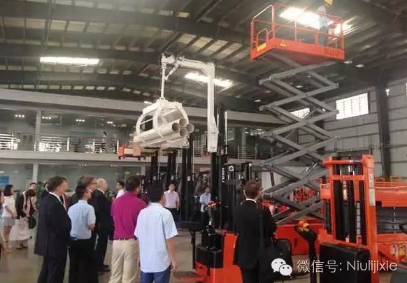 在牛力机械厂区内,考察团一行首先在展厅观看了汽车尾板、异型叉车、电动扫地车、自行走剪叉高空作业平台、曲臂升降平台等先进机械现场操作展示,并详细了解了各产品的使用性能和技术指标等。考察团一行对牛力公司的产品有浓厚的兴趣,纷纷表示回国后要大力推介。