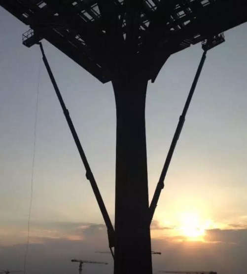 最初,此次滨海新区艺术中心的总建造商中建八局决定使用脚手架完成这28把“钢筋伞”的涂装,但是负责涂装工程承包商张工说道:“在以前的施工作业中使用过吉尼高空作业平台,深刻体会到了吉尼高空作业平台所带来的高效率,相比过去采用脚手架施工方案效率提高了30%,以及对于施工人员的安全保障也是脚手架无法企及的。所以我极力推荐吉尼高空作业平台进行作业。”在张工的建议下共使用十多台吉尼设备,其中包括:Genie®S™-105直臂型高空作业平、GenieS-125直臂型高空作业平台、GenieS-100HD直臂型高空作业平台,但因为“钢筋伞”是异型结构,搭设脚手架时会浪费大量的时间,人力,物力,还会造成现场交通不便,现场物料的运输也会更加复杂,而且脚手架影响其它工种的正常作业,在一定程度上大大延长了工期。工作高度达40米的GenieS-125吉尼直臂型高空作业平台结合了的卓越的延展性和非凡的机动性于一身,360°的连续全回转转盘能使设备定位快速灵活。因为摆尾极小,机器在狭窄的空间也能灵活操作,工人们使用上吉尼高空作业平台施工以后就不再需要像“蜘蛛人”一样在工地里爬上爬下,而是可以驾驶着高空作业平台自如、潇洒地出现在每一个高空作业点,安全感倍增使他们工作起来更得心应手。